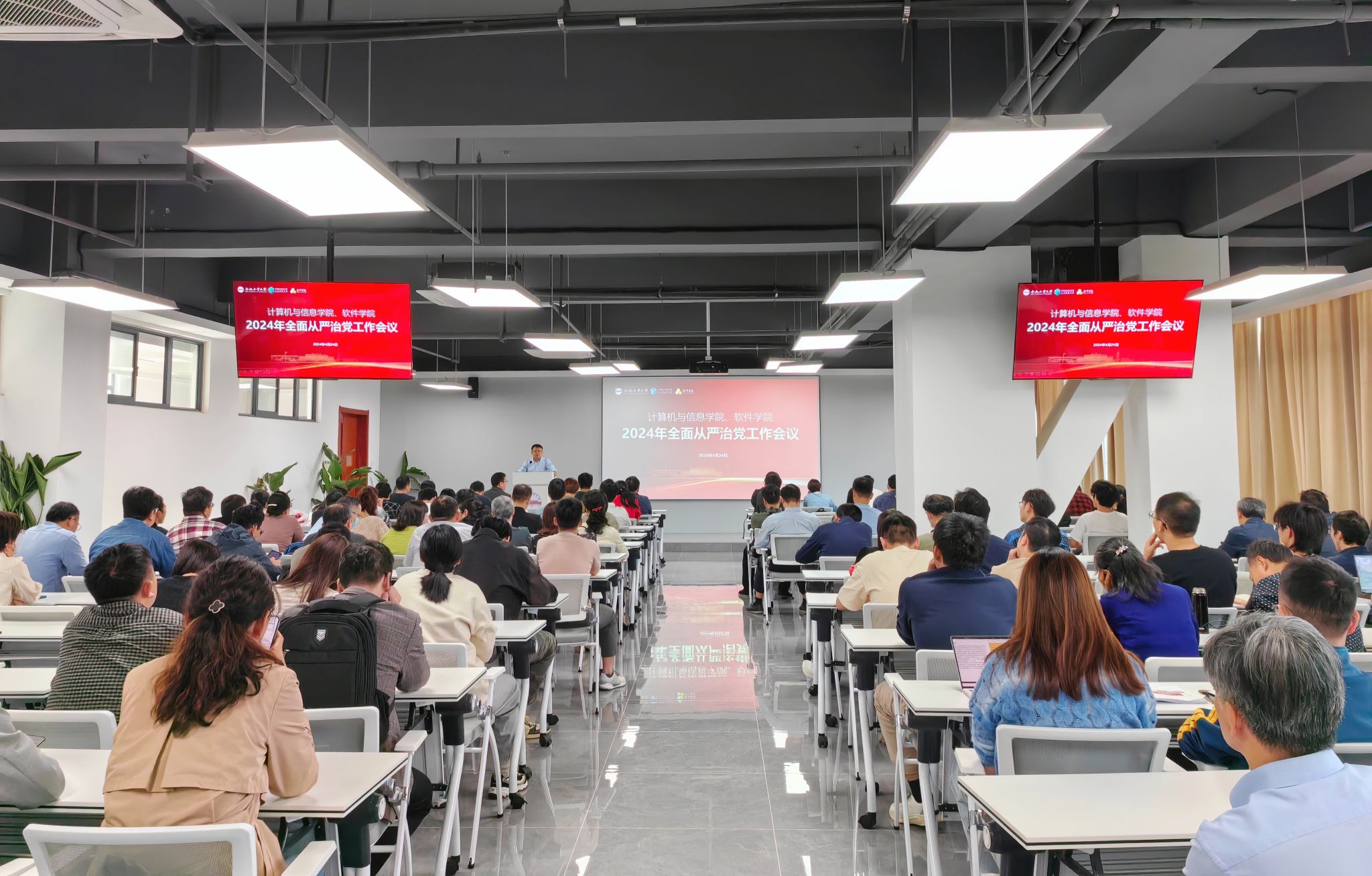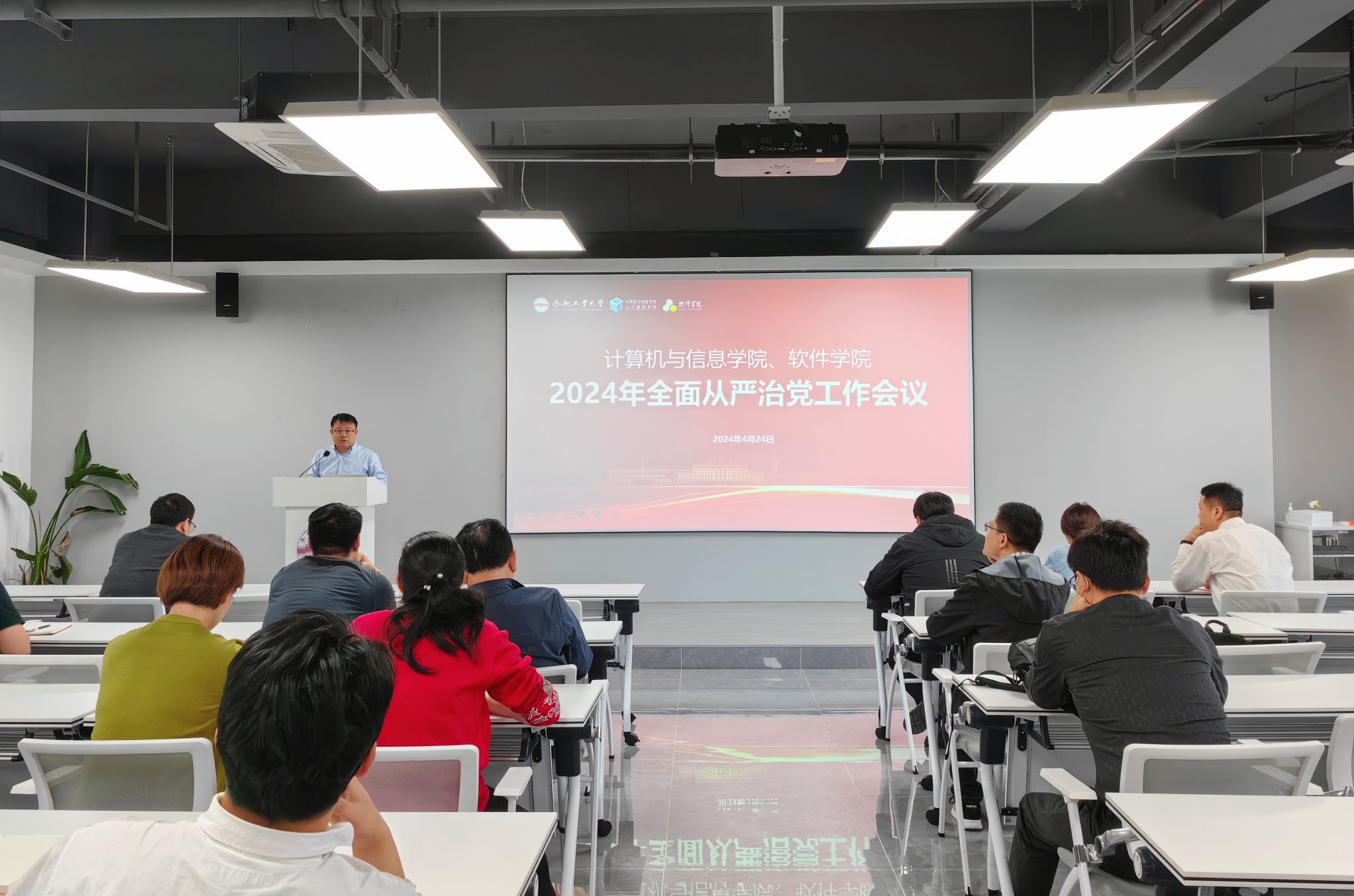 4月24日下午,学院召开2024年全面从严治党工作会议,传达学校2024年全面从严治党工作会议精神,布置学院2024年全面从严治党工作,会议由学院党委书记年永琪主持。
