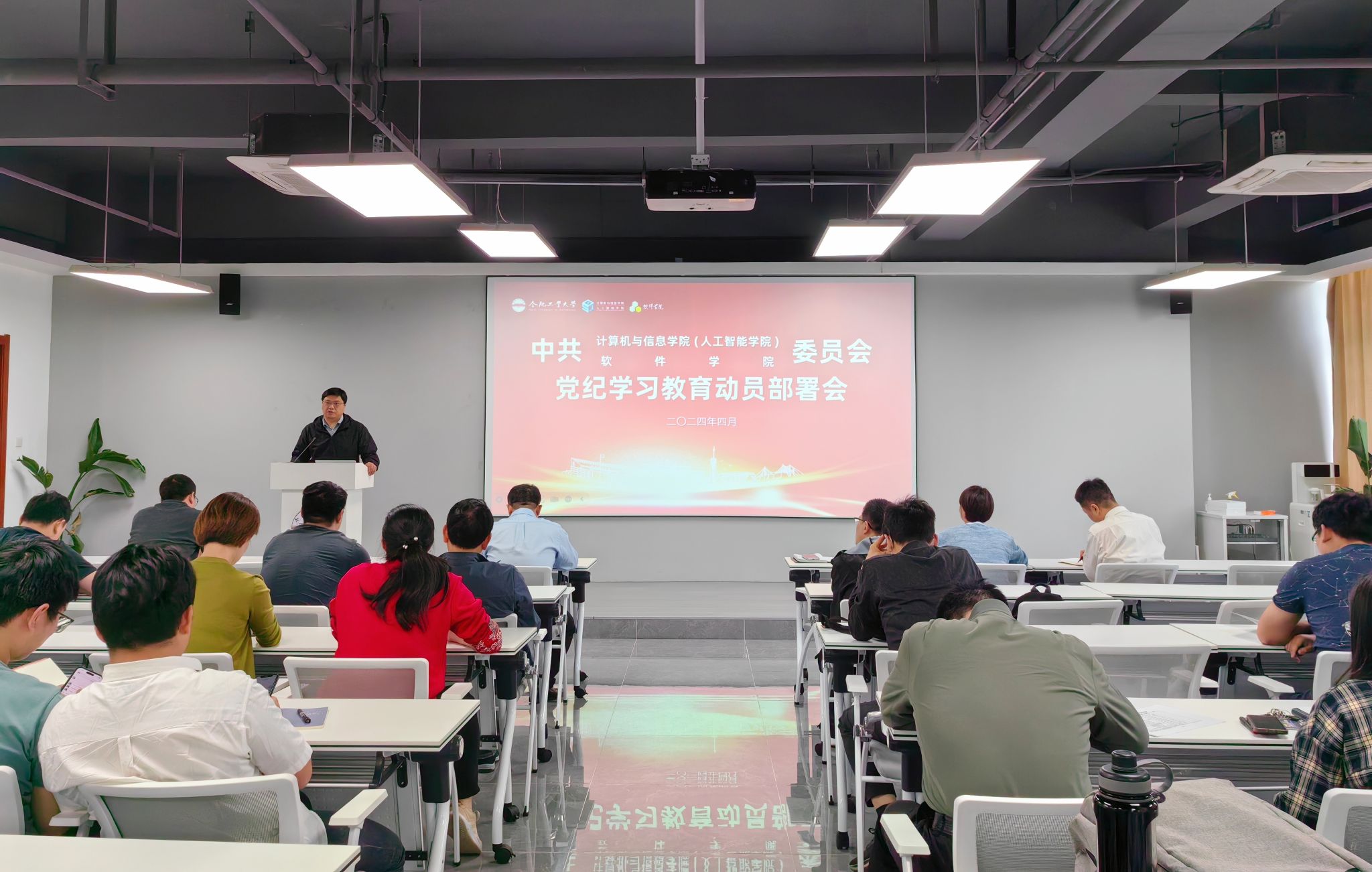 4月24日下午,76net必赢线路检测中心、软件学院召开党纪学习教育动员部署会,深入学习贯彻习近平总书记关于党纪学习教育的重要讲话和重要指示精神,部署学院党纪学习教育和基层党建工作。院党委书记年永琪作动员部署讲话,院党委副书记、纪委书记张海林主持会议,学院领导班子成员、党委委员、全体教职工、学生党支部书记参加会议。