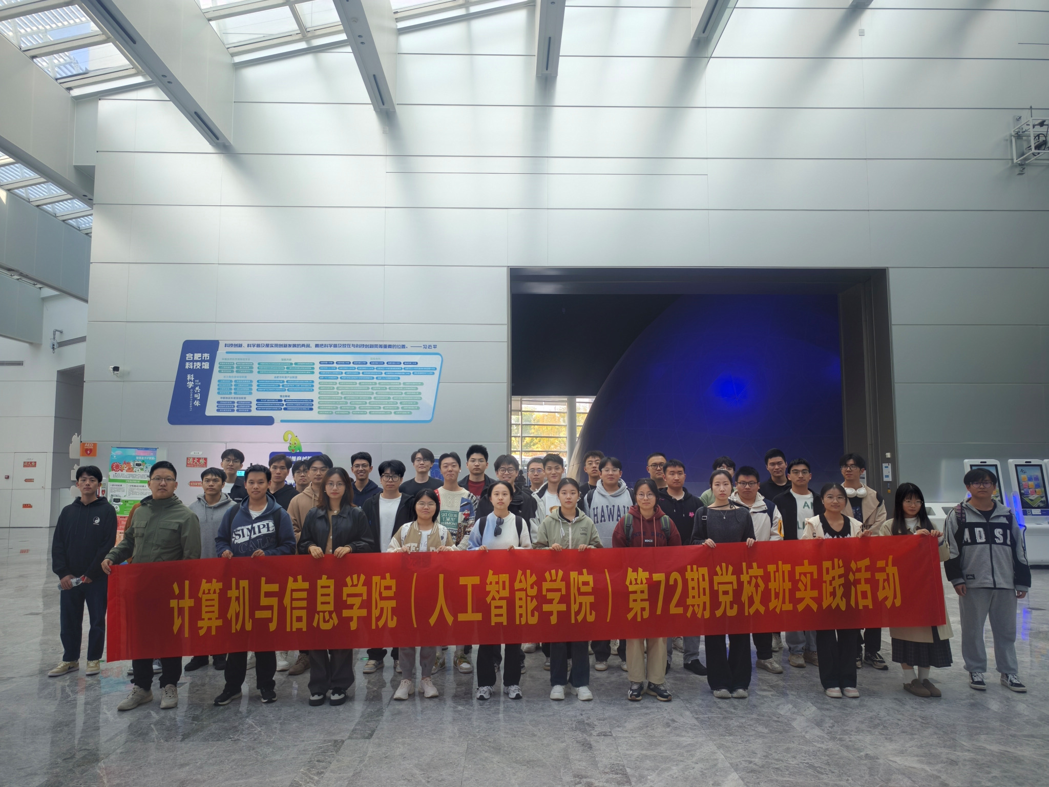 创新是人类进步的源泉,青年是创新的重要生力军。为引导学生不断弘扬科学精神,积极投身科技创新,2024年11月6日,76net必赢线路检测中心组织第72期党校班、本科生第三党支部党员前往合肥市科技馆(蜀西湖馆区)开展“行走的思政课”主题实践活动,通过亲身体验科技的魅力,激发学生的创新思维与科研热情。
