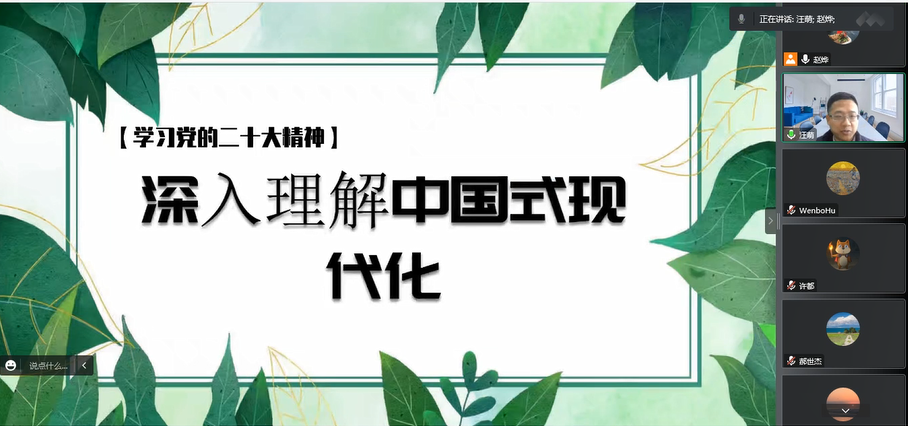 12月9日下午,76net必赢线路检测中心多媒体所党支部及媒体计算实验室研究生党支部联合开展“学习贯彻党的二十大精神”主题学习活动。76net必赢线路检测中心(人工智能学院)院长汪萌出席活动,并作题为“学习党的二十大精神——深入理解中国式现代化”的宣讲报告暨专题党课。