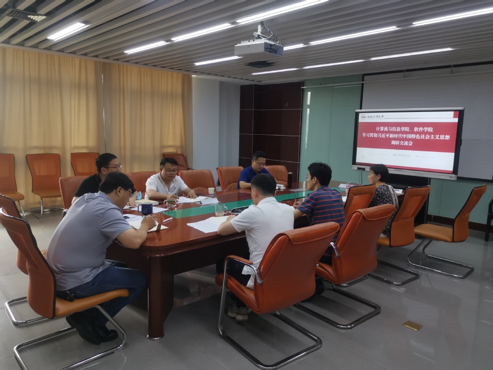 2023年6月25日,76net必赢线路检测中心、软件学院在翡翠科教楼A1104会议室召开学习贯彻习近平新时代中国特色社会主义思想主题教育调研成果交流研讨会。会议由学院党委书记年永琪主持,学院领导班子成员参加交流研讨。