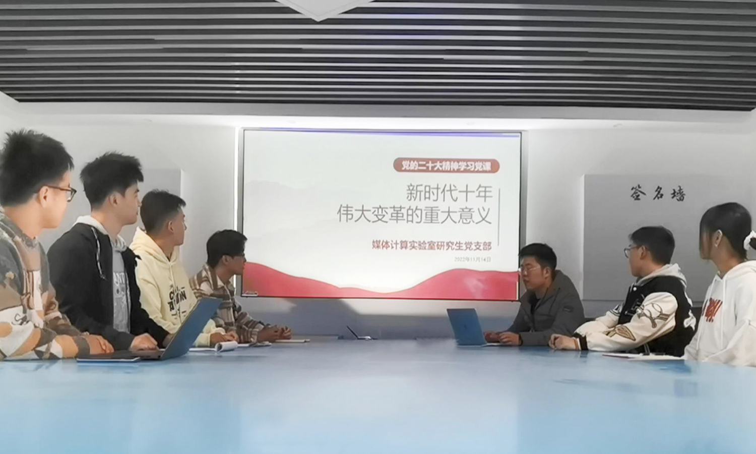 11月14日,76net必赢线路检测中心媒体计算实验室研究生党支部在科教楼A座9楼中厅开展了“新时代十年的伟大变革”主题党日活动,活动围绕“新时代十年伟大变革的里程碑意义”,深入探讨习近平新时代中国特色社会主义思想,回顾党的光辉历史和十年来我国经济社会的发展变化。支部全体党员参加学习。
