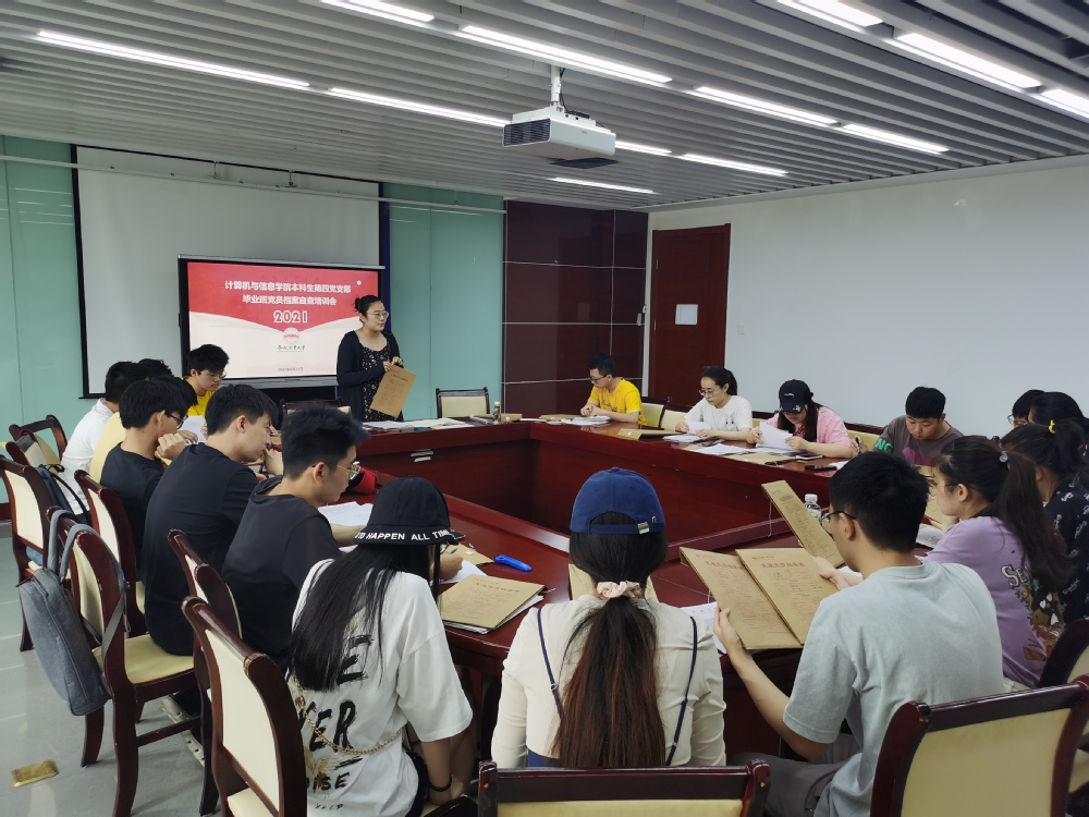 为做好毕业生党员材料的整理归档,增强党员发展工作的规范性,76net必赢线路检测中心本科生第四党支部于6月11日上午在翡翠科教楼A座1106开展了毕业班党员档案自查培训会。会议由支部书记叶璟主持,支部全体毕业班党员参加了本次培训会。
