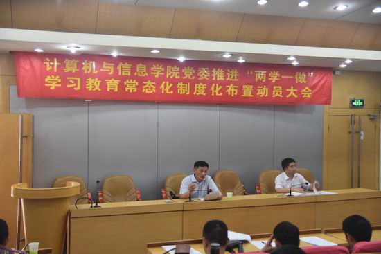 祖权代表学院党委就贯彻落实中共中央、教育部党组和学校党委的部署要求,推进学院“两学一做”学习教育常态化制度化作了全面部署,深刻阐述了推进“两学一做”学习教育常态化制度化的重要意义、目标要求和重点任务,并就我院教工和学生党支部落实“两学一做”学习教育常态化制度化提出了要求。