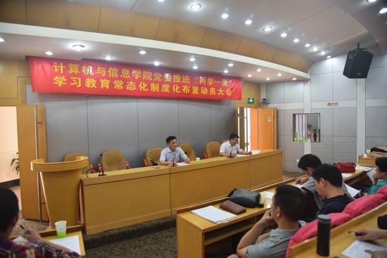 6月7日下午,我院在校学术会议中心小报告厅召开推进“两学一做”学习教育常态化制度化布置动员大会,部署我院推进“两学一做”学习教育常态化制度化工作,全院教工党员和研究生、本科生党支部书记参加了会议。会上,院党委书记祖权作“两学一做”学习教育常态化制度化动员报告,院党委副书记何庆领主持会议。