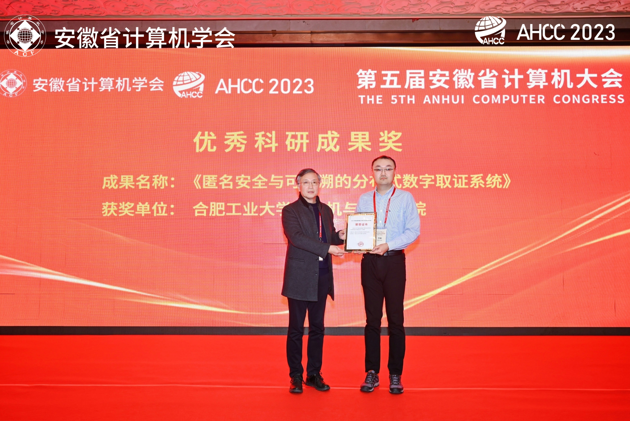 近期,2023年度安徽省计算机学会奖励名单发布,我院教师吴文明获评优秀青年科学家奖,教师李萌课题组工作获评优秀科研成果奖,硕士生卓兴锐获评优秀硕士学位论文(指导教师:吴共庆),硕士生郑欢获评优秀硕士学位论文(指导教师:张召),本科生申延哲获评优秀本科毕业论文(设计)(指导教师:李萌)。