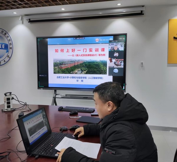 毕翔老师为新能源学校19名教师进行了PPT介绍,从实训课题的选材、内容的设计、验收方法的创新、校企合作的模式、学生积极性的激发等方面进行了经验分享,并以我院“嵌入式系统课程设计”金课为例,进行了案例展示;夏娜老师则从教学管理层面,从教师能力的提升、教师积极性的保护、差异化的工作量认定等方面进行了交流;随后,双方针对一些关键问题进行了探讨,明确了教学工作优化的思路和方案。