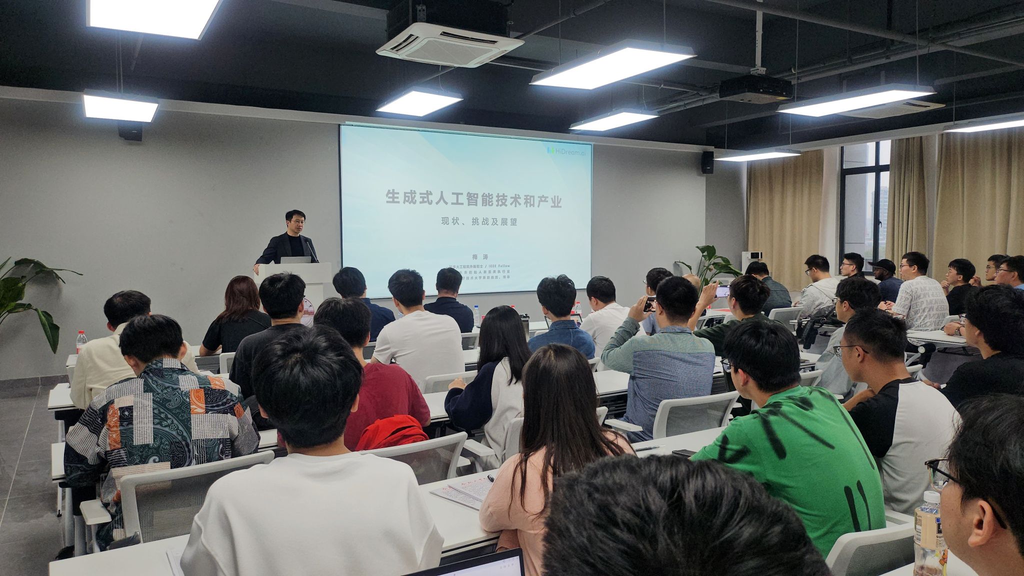 10月15日晚,76net必赢线路检测中心“斛兵研学”主题学术讲座在翡翠科教楼B座503成功举办。本次讲座荣幸邀请到了加拿大工程院外籍院士、原京东集团副总裁、智象未来(HiDream.ai)创始人兼首席执行官梅涛博士担任主讲嘉宾。76net必赢线路检测中心副院长吴共庆、学院学工办主任兼团委书记黄晨,智象未来联合创始人兼CTO姚霆等出席了活动。活动由院研究生会和第72期党校学员班组织,吸引了100余名本科生和研究生参加。