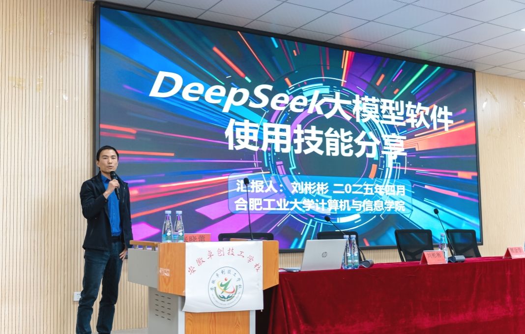 三位教师分别在三所学校为1500余名师生同步做了“DeepSeek大模型软件使用技能分享”的讲座。三位教师图文并茂地介绍了当下几种常用大模型软件,特别是DeepSeek的使用技能,分享了在文案撰写、PPT制作、无代码网站制作、带货数字人打造、创意视频生成、3D模型生成、二次创作等方面的使用经验。精彩的讲解和演示给了现场师生一次沉浸式“AI教育”体验。讲座结束后,三位老师还与三所学校的专业教师就AI技术如何应用于教学备课、课件生成、数据分析等方面进行了交流。