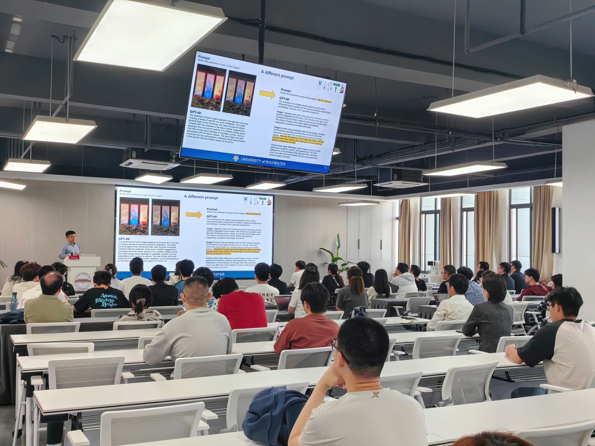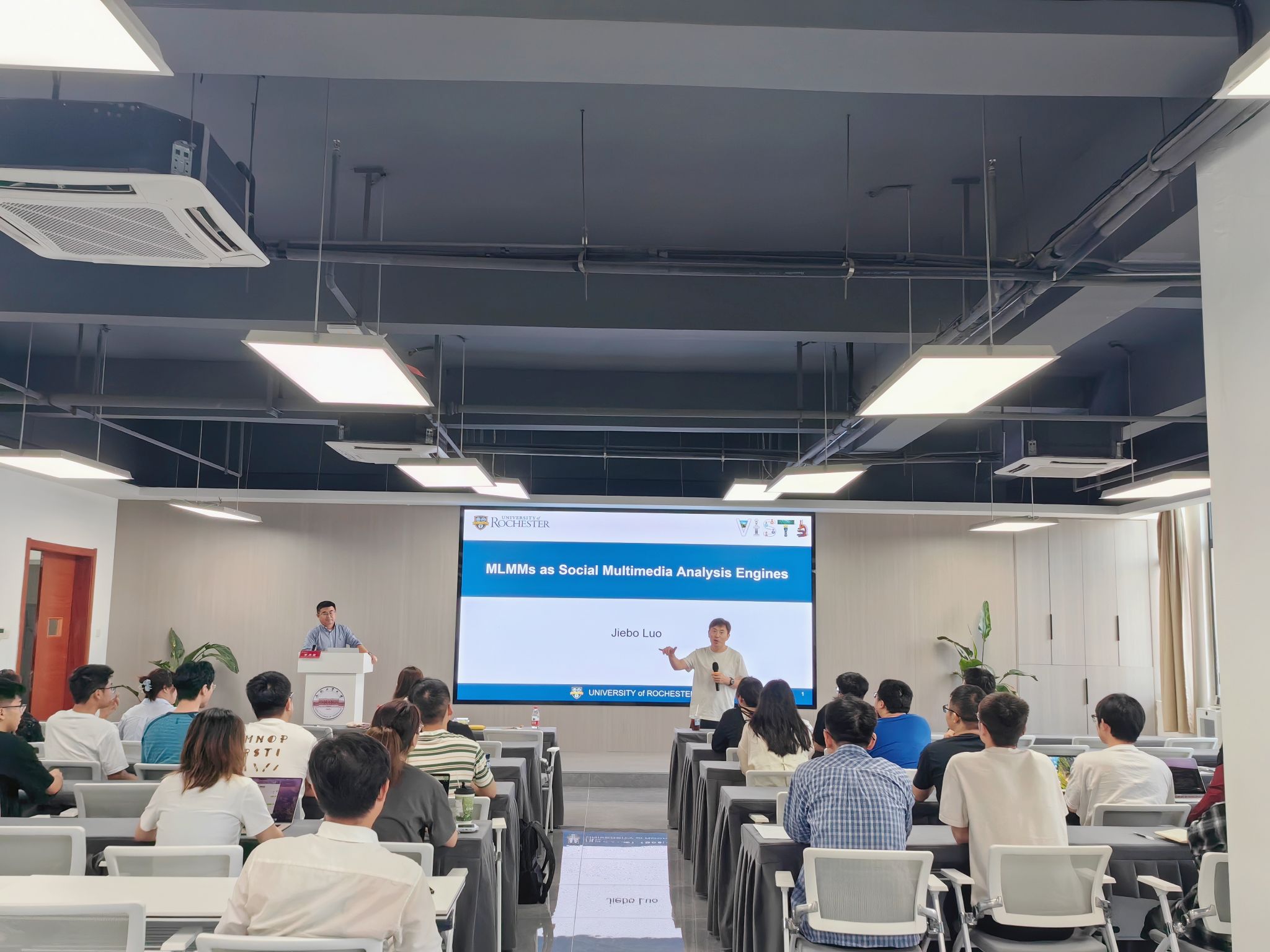5月16日下午,罗切斯特大学教授、欧洲科学院院士、美国国家发明家学院院士罗杰波应学院邀请,在翡翠科教楼B座501报告厅带来题为《Multimodal LLMs as Social Media Analysis Engines》的精彩报告,系统阐述了多模态大语言模型在社交媒体内容解析中的技术突破与挑战。本次报告由学院院长洪日昌教授主持。
