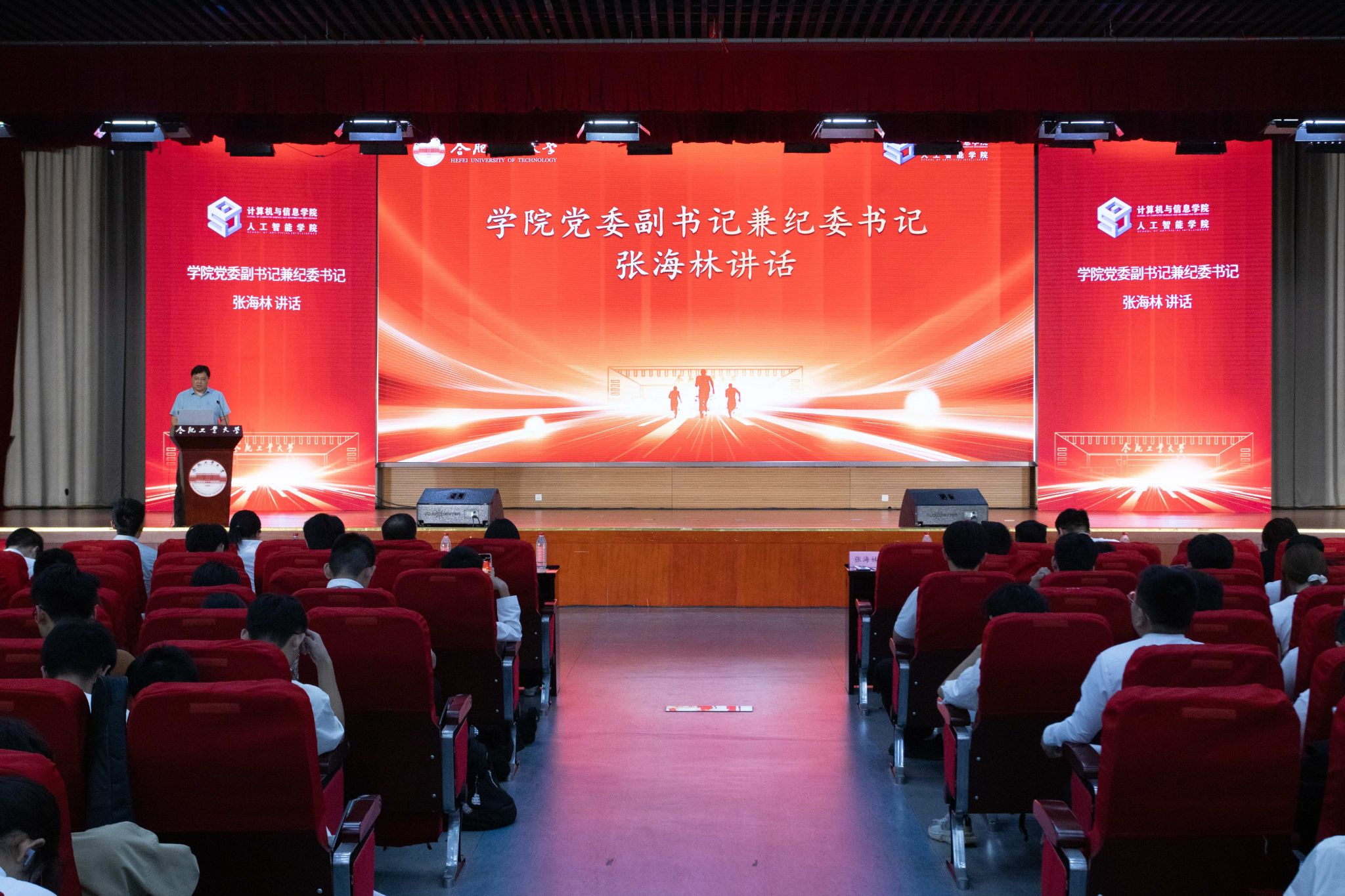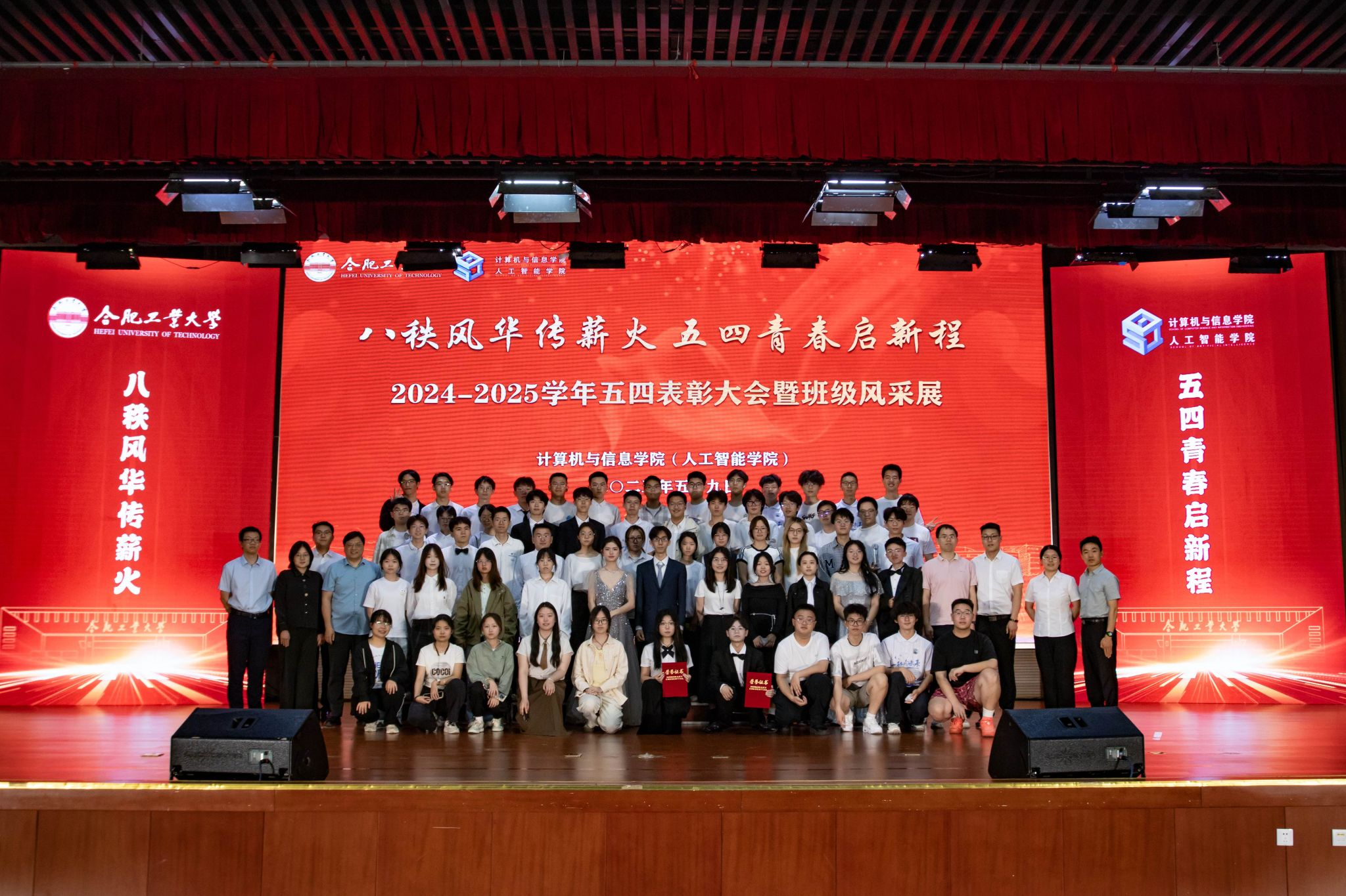 5月9日,76net必赢线路检测中心(人工智能学院)在翡翠湖校区科教楼二楼报告厅举行了“八秩风华传薪火,五四青春启新程”五四表彰大会暨班级风采展活动,表彰过去一年中涌现出的先进团支部与 先进个人。学院党委副书记兼纪委书记张海林、学院团委副书记叶璟、相关年级辅导以及2024级全体同学参加了活动。