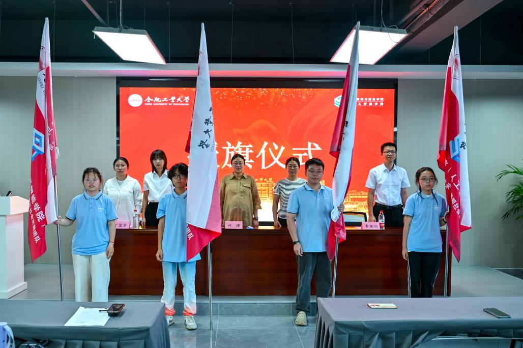 仪式上,学院暑期“三下乡” 团队指导老师为12支社会实践立项团队授旗,象征着实践任务的正式启动,也寄托着学院对各团队的殷切期望。计算机科学与技术23级1班余翰廷同学作为实践团队代表做出征承诺,他表示将带领团队严格遵守实践纪律与安全规定,以饱满的热情投入到基层实践中,用专业知识服务乡村发展,在实践中锤炼自我、奉献青春。随后,余翰廷同学带领全体师生宣誓,誓言铿锵有力,彰显了大家投身实践、服务社会的坚定决心。学院团委副书记叶璟老师从日常管理、安全预案、注意事项等方面进行安全教育,同时就实践成果产出、结项要求等内容展开详细指导,为各团队的实践活动提供了清晰指引。