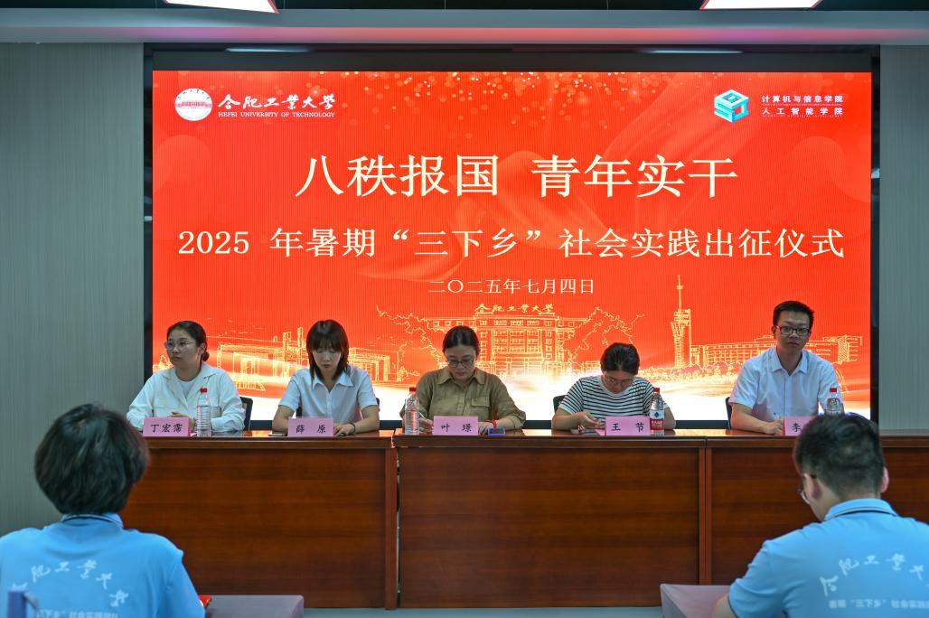 7月4日下午,学院于翡翠科教楼B501会议室举行以 “八秩报国,青年实干” 为主题的2025年暑期 “三下乡” 社会实践出征仪式,学院相关负责老师、12支立项队伍全体成员参与本次活动。