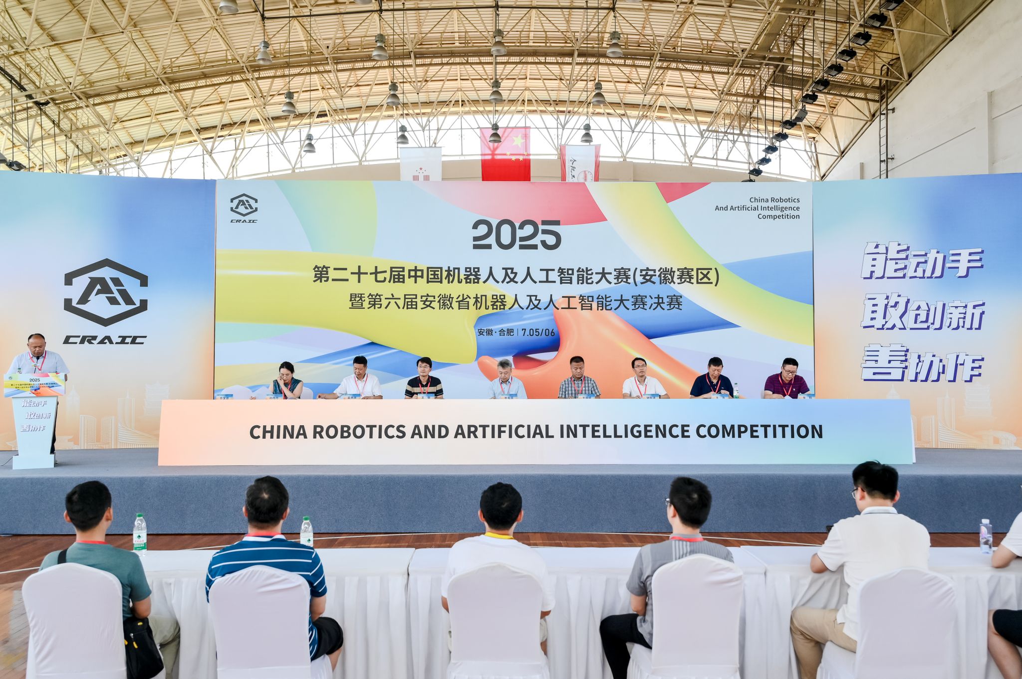 2025年7月5日-6日,第二十七届中国机器人及人工智能大赛(安徽赛区)暨第六届安徽省机器人及人工智能大赛决赛在bwin必赢线路检测翡翠湖校区成功举办。中国机器人及人工智能大赛组委会主席朴松昊教授,中国机器人及人工智能大赛总裁判长钟秋波教授,安徽省工业和信息化厅装备工业处王国成副处长、王敏副处长,国际先进技术应用推进中心(合肥)机器人事业部孙丹丹部长,76net必赢线路检测中心副院长吴共庆教授,安徽赛区组委会专家组组长bwin必赢线路检测王浩教授等到访嘉宾,以及来自全省各地38所高校的430支队伍,1288名参赛选手齐聚现场,在机器人及人工智能各赛项的安徽省决赛中展开激烈角逐。