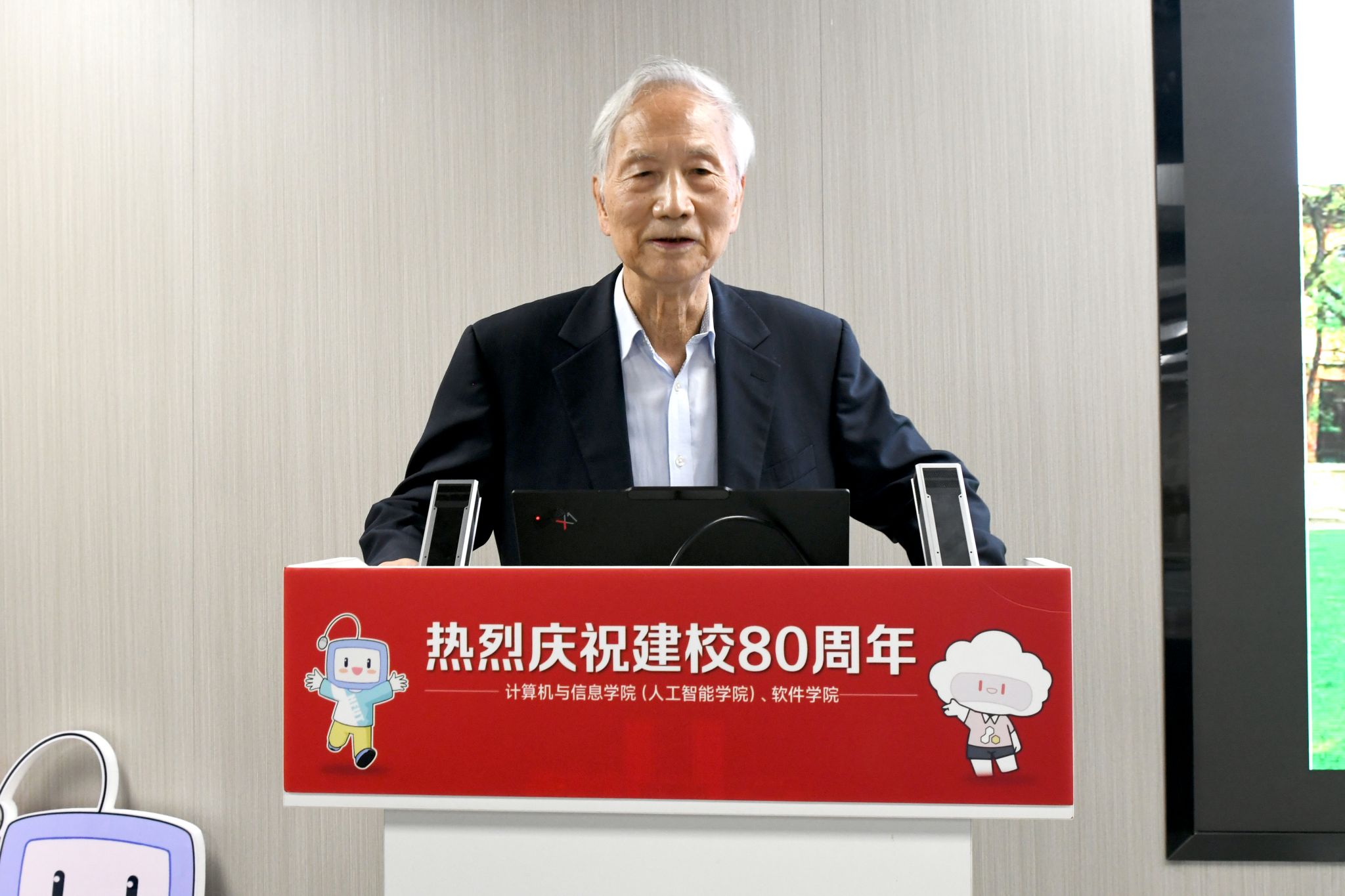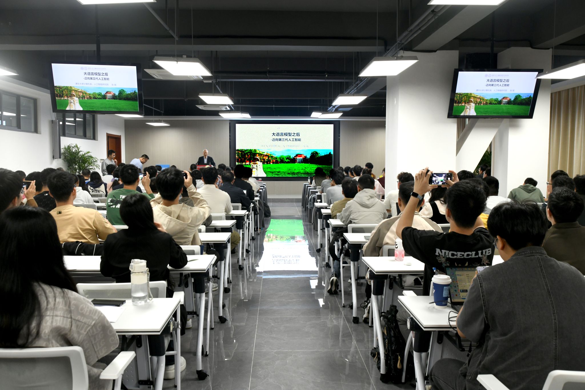 “大语言模型之后”的主旨报告中,张钹院士从人工智能数十年的发展脉络切入,深刻剖析了当前大语言模型的技术瓶颈与内在局限,并前瞻性地指明了未来AI发展的可能路径。作为该高峰论坛的收官之讲,张院士的报告将整个系列的学术探讨推向了高潮,其深邃的洞察为在场师生带来了深刻启发,也为80周年校庆延续了浓厚的学术氛围。
