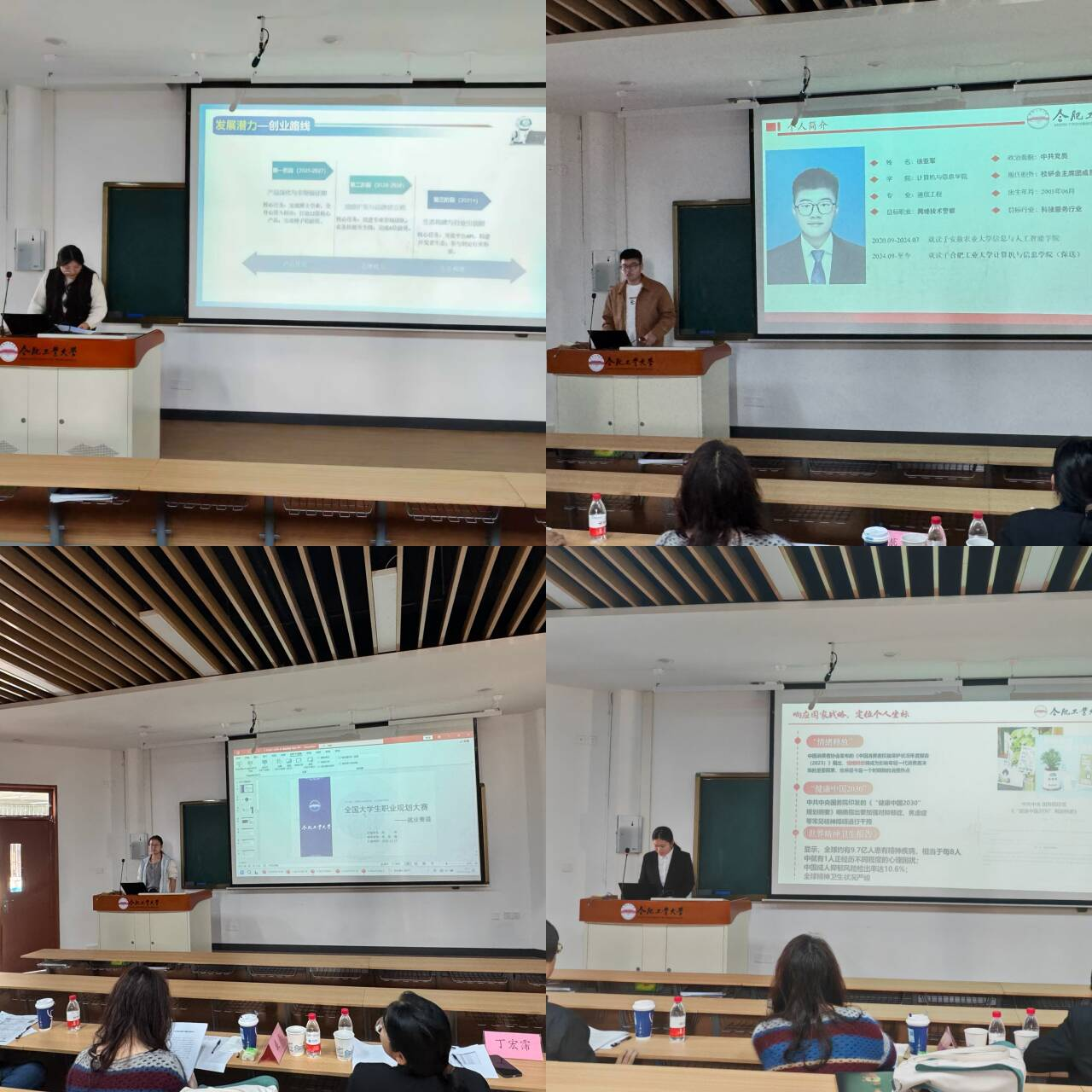 大赛设成长赛道与就业赛道,覆盖本硕博不同发展阶段的学生需求,吸引学院近2000名同学报名参加。经过筛选,13名同学进入现场展示环节。比赛现场,同学们结合自身专业特点与行业发展趋势,从个人特质分析、目标行业调研、职业目标确定、评估与调整等维度对职业规划和就业方向进行了深入阐述,充分展现了对未来职业发展的深度思考。评委们针对每位选手的规划合理性、可行性以及创新性进行提问,并给予综合评分。