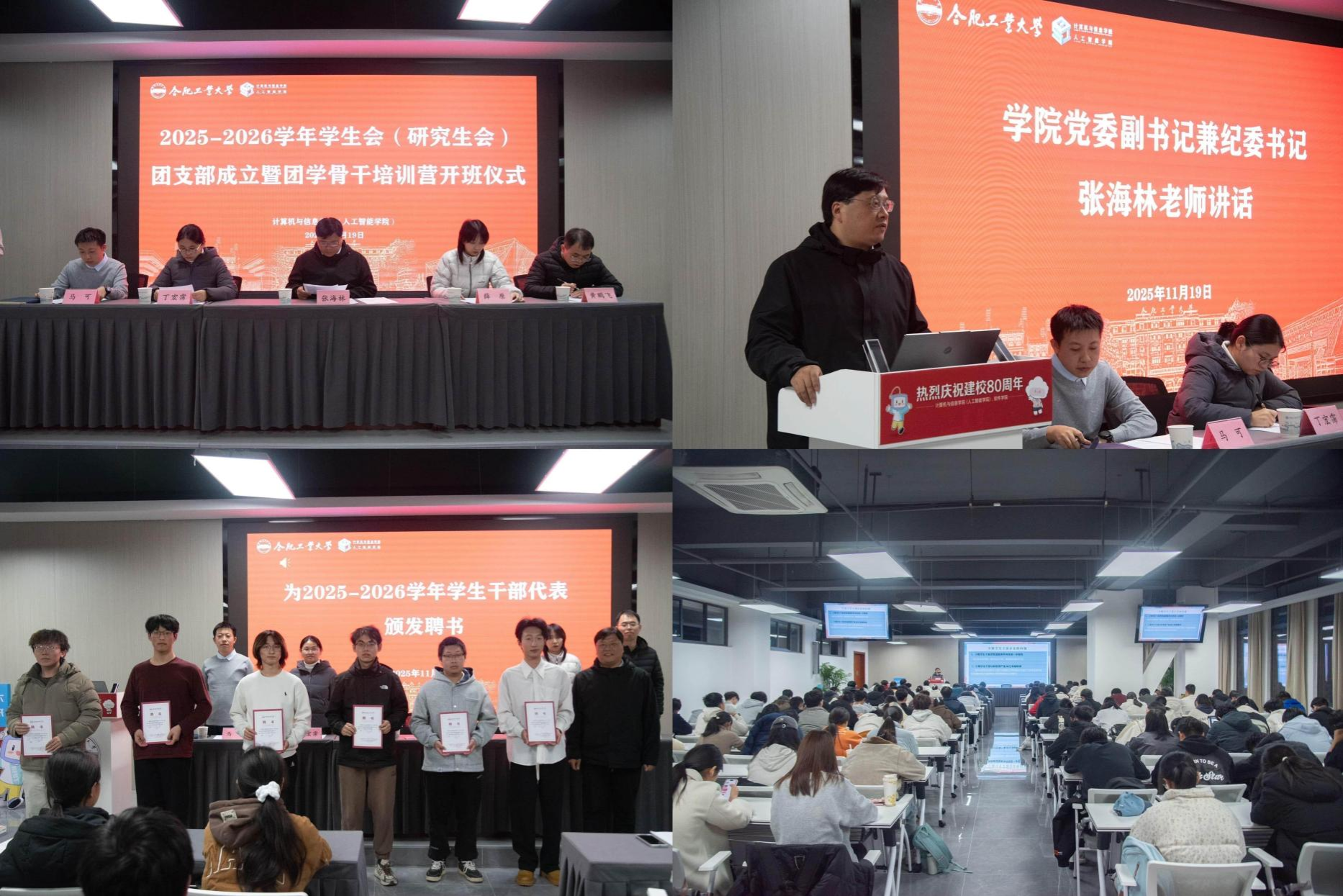 11月19日,76net必赢线路检测中心(人工智能学院)在科教楼B座501教室举行2025-2026学年学生会(研究生会)团支部成立暨团学骨干培训营开班仪式。学院党委副书记兼纪委书记张海林、相关负责老师,以及学院各级团学组织成员、2025级学生骨干代表共同参加活动。