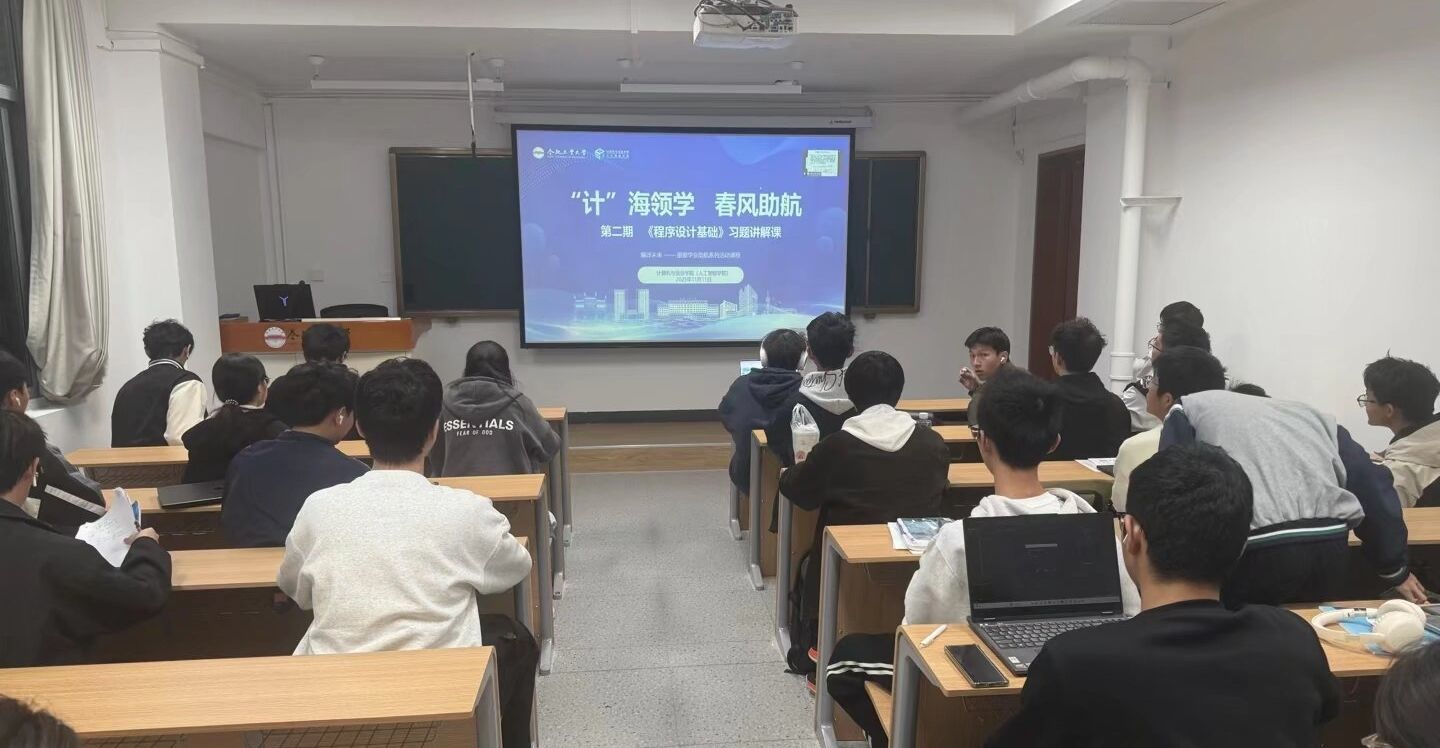 为进一步帮助大一新生巩固知识、提升学习效果,同时确保优质资源广泛覆盖与个性化辅导并行,11月11日,由党委学生工作部(处)主办、76net必赢线路检测中心(人工智能学院)承办的以“线上线下巡回联动:《程序设计基础》朋辈辅导和集中答疑”为主题的第二期“计”海领学,春风助航活动在教学楼各班晚自习室成功举办。朋辈讲师团巡回主讲,学院大一新生参与活动。