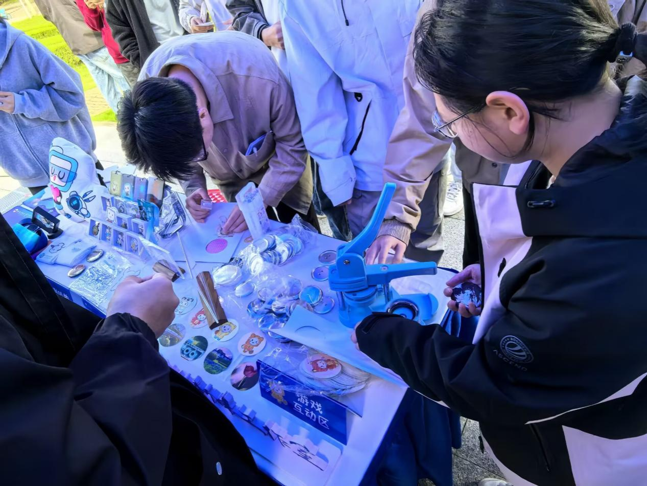本次活动通过作品展示、互动体验、创意实践三大板块,全方位呈现校院两级网络文化建设的丰硕成果,为全校师生打造了一场兼具思想性、艺术性与实践性的文化盛宴。活动当天,东风广场氛围热烈。在志愿者的有序引导下,师生们率先参观了网络文化优秀作品展。展览汇集了《光阴碎片》《校园风景》《自然之韵:天地画卷》等一批高质量作品,这些作品展现了我校学子扎实的专业技能和创新思维,也传递出青年学子对生活之美、自然之趣与科技之力的深刻感悟。互动体验环节成为活动的一大亮点,其中 “周边 DIY” 区域更是人气爆棚,排起了长队。同学们在工作人员的专业指导下,充分发挥创意,从外形设计、数字建模到 3D 打印、裁剪组装,全程参与专属纪念品的制作过程。这种将虚拟创意转化为实体成果的沉浸式体验,不仅让同学们直观感受了数字技术与人文创意的融合魅力,更在实践中提升了创新能力和动手能力,赢得了师生们的广泛好评。