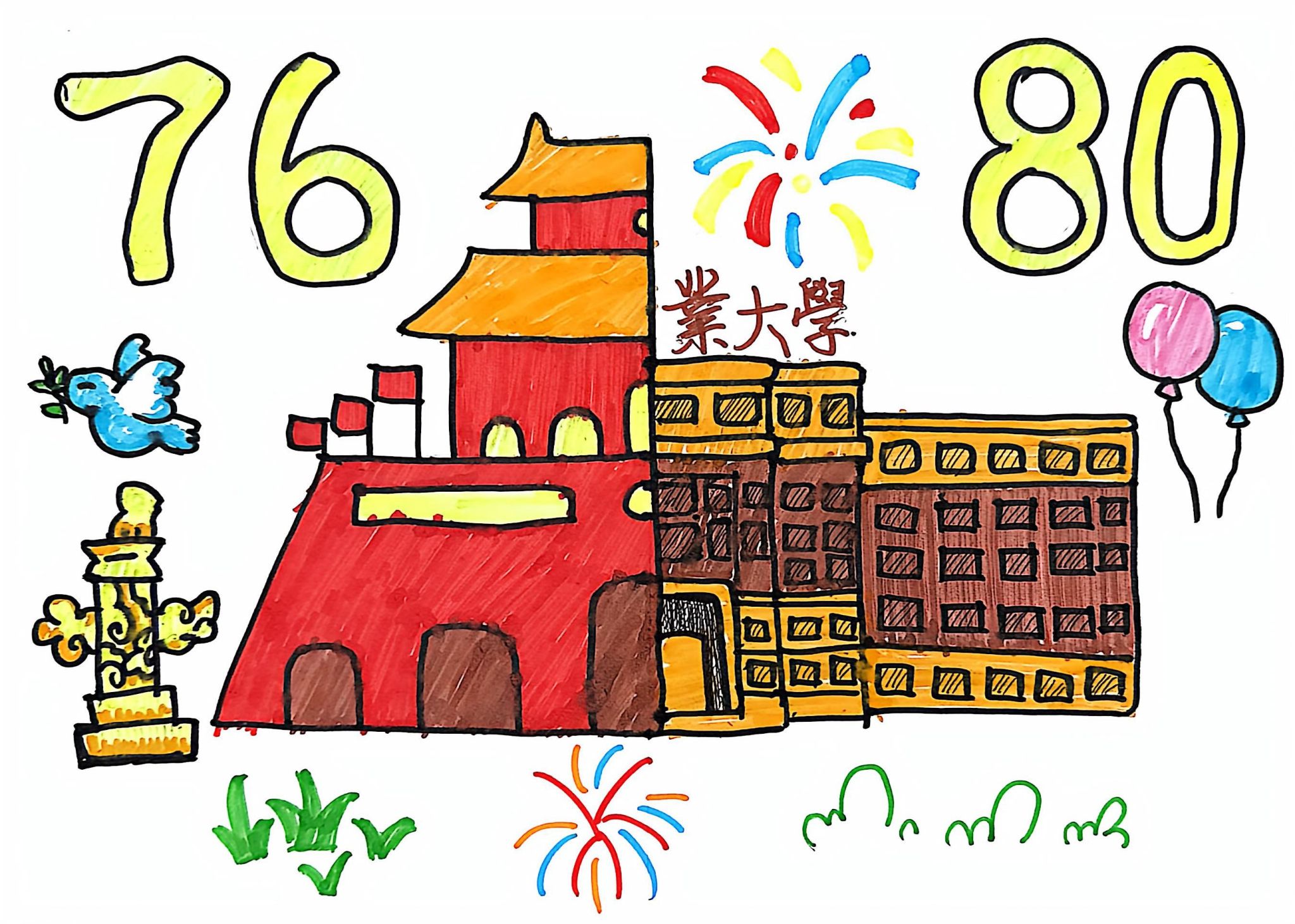 本次活动设置绘画、征文、短视频三大板块,吸引全院学子踊跃参与,同学们或用笔墨勾勒山河与校园风华,或用文字礼赞祖国成就与母校征程,或用镜头记录与国旗、校园地标的同框瞬间,累计收到各类作品55件。活动结束后,学院综合事务部为保障评选公正性,组建评审小组,通过作品主题契合度、创意表现、制作质量等维度开展公平公开评选,最终筛选出的优秀作品已通过学院官方公众号、“小喇叭”进行展示,所有参与并符合要求的同学均获计入第二课堂成绩单,以多元创意为祖国与母校献上青春告白。