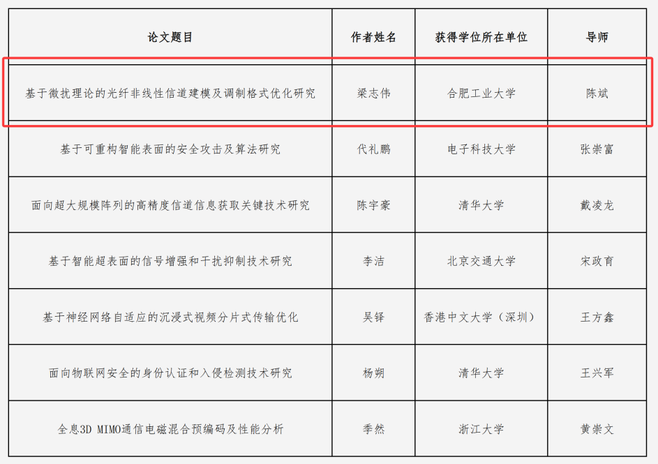 图2 2025年度中国通信学会硕士学位论文激励计划入选名单