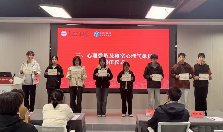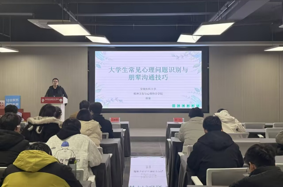 为进一步健全学院心理健康教育工作体系,切实提升新生心理骨干的责任意识与服务能力,76net必赢线路检测中心(人工智能学院)于12月5日19:00在科教楼B501开展“珍爱自我,向阳而生”新生朋辈心理骨干聘任仪式暨12·5心理健康日活动。安徽医科大学副教授徐泉应邀开展专题讲座,学院相关负责老师、2025级全体心理委员、寝室心理气象员参会。