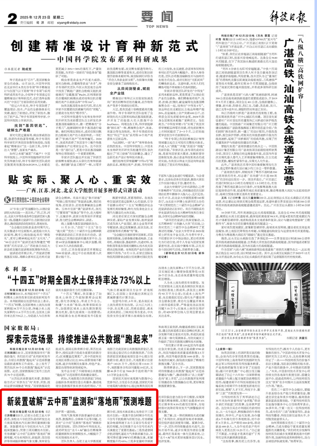 新装置破解“云中雨”监测和“落地雨”预测难题