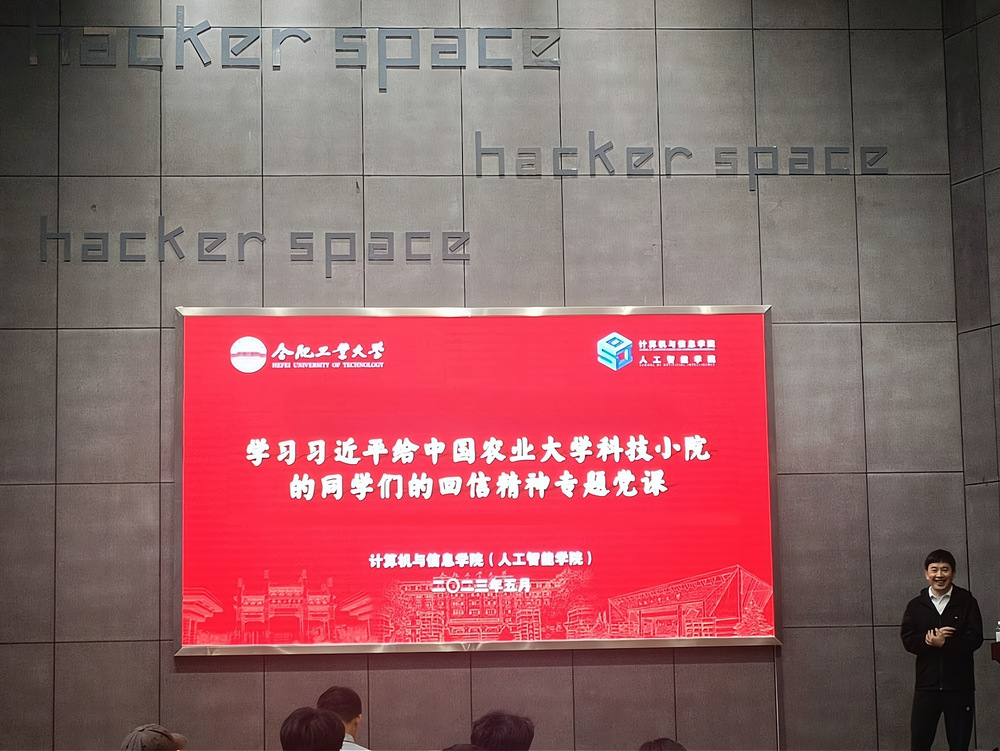 On the afternoon of May 22, a special party class on studying and implementing the spirit of General Secretary Xi Jinping's important reply to the students of the Science and Technology Courtyard of China Agricultural University was held at the Big Data Center of the Emerald Science and Education Building. The party class was given by Hong Richang, the executive vice dean of the college, and more than 50 teachers and students from various grades, graduate student associations, and the second party branch of undergraduates participated in the study.