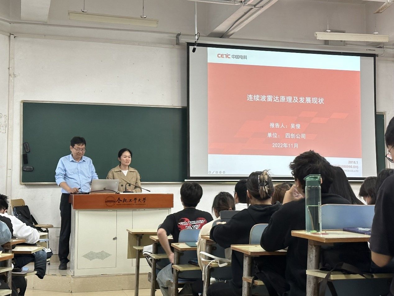 To further strengthen students' learning of knowledge related to the field of radar, expand everyone's understanding of the application field of radar at home and abroad, and enhance interest in the direction of radar, at the invitation of Professor Zhou Hongping, Researcher Wu Jun from Sichuang Electronics Co., Ltd. conducted a special lecture on "Continuous Wave Radar Principles and Development Status" at 2 pm on October 23 in Room 102, Building 11, Feicui Lake Campus of our school. The lecture was hosted by Professor Zhou Hongping, and more than 100 graduate and undergraduate students from the college participated.