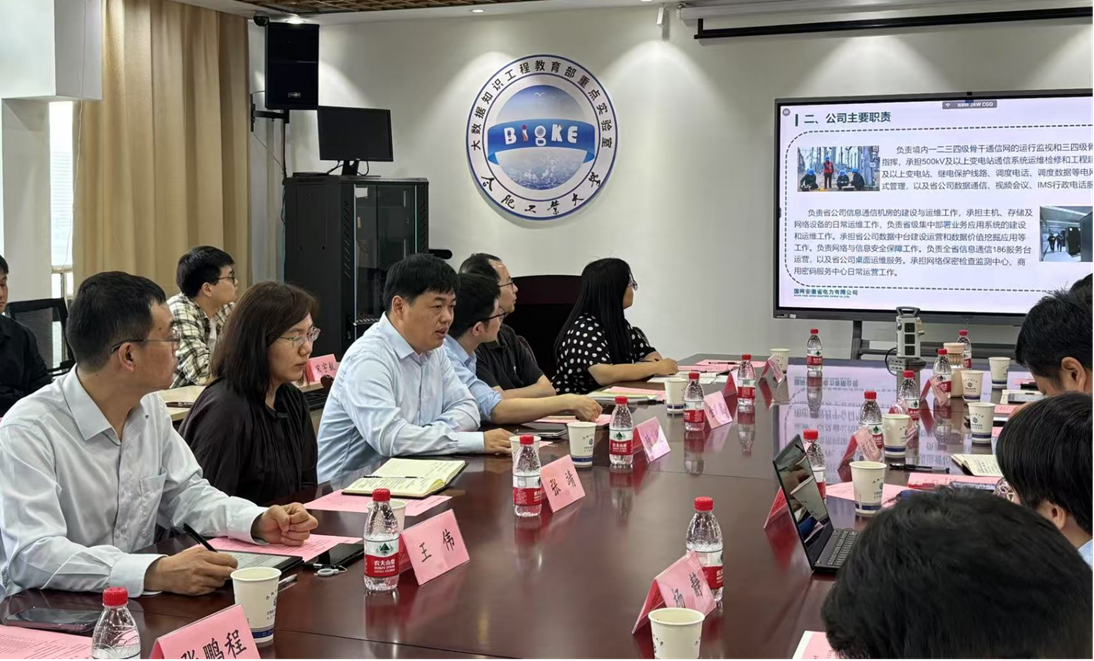 On April 29, 2025, our school held an exchange symposium with State Grid Anhui Information & Telecommunication Company (hereinafter referred to as the "ITC Company") in Room A706 of the Science and Education Building. The meeting was attended by 17 representatives from ITC Company, including Deputy General Manager Lu Jun, heads of the technology management and business departments, and key innovation personnel. From our school, attendees included Division Director-level Organizer He Qingling, Vice Dean Wu Gongqing, Director of the Innovation Practice Center Wei Xing, Director of the Department of Intelligent Science Jia Wei, and other relevant faculty members. The meeting was chaired by Vice Dean Wu Gongqing.